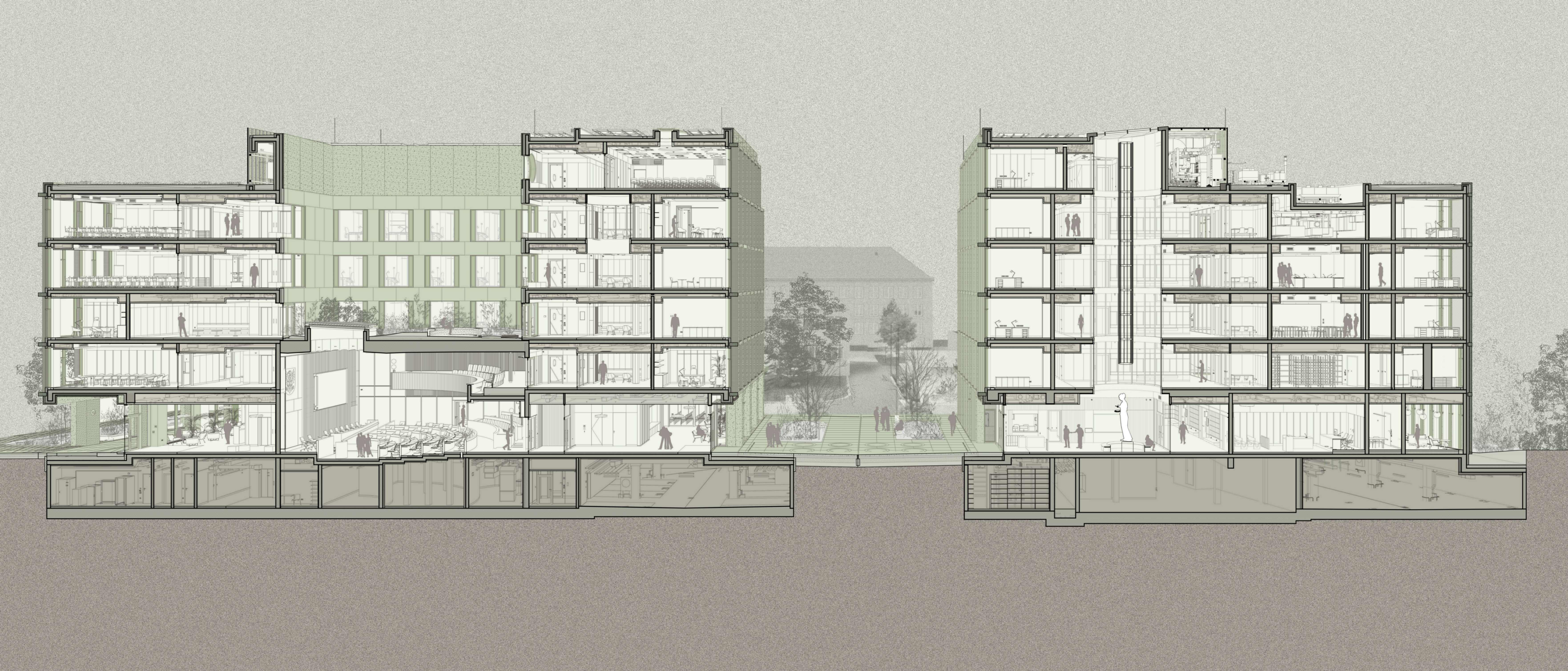 The designed complex, which includes the building of the Court of Appeal and the building of the institutions of the Mazowieckie Voivodeship, complements the existing premise of the Supreme Court, fitting into its architectural narrative.